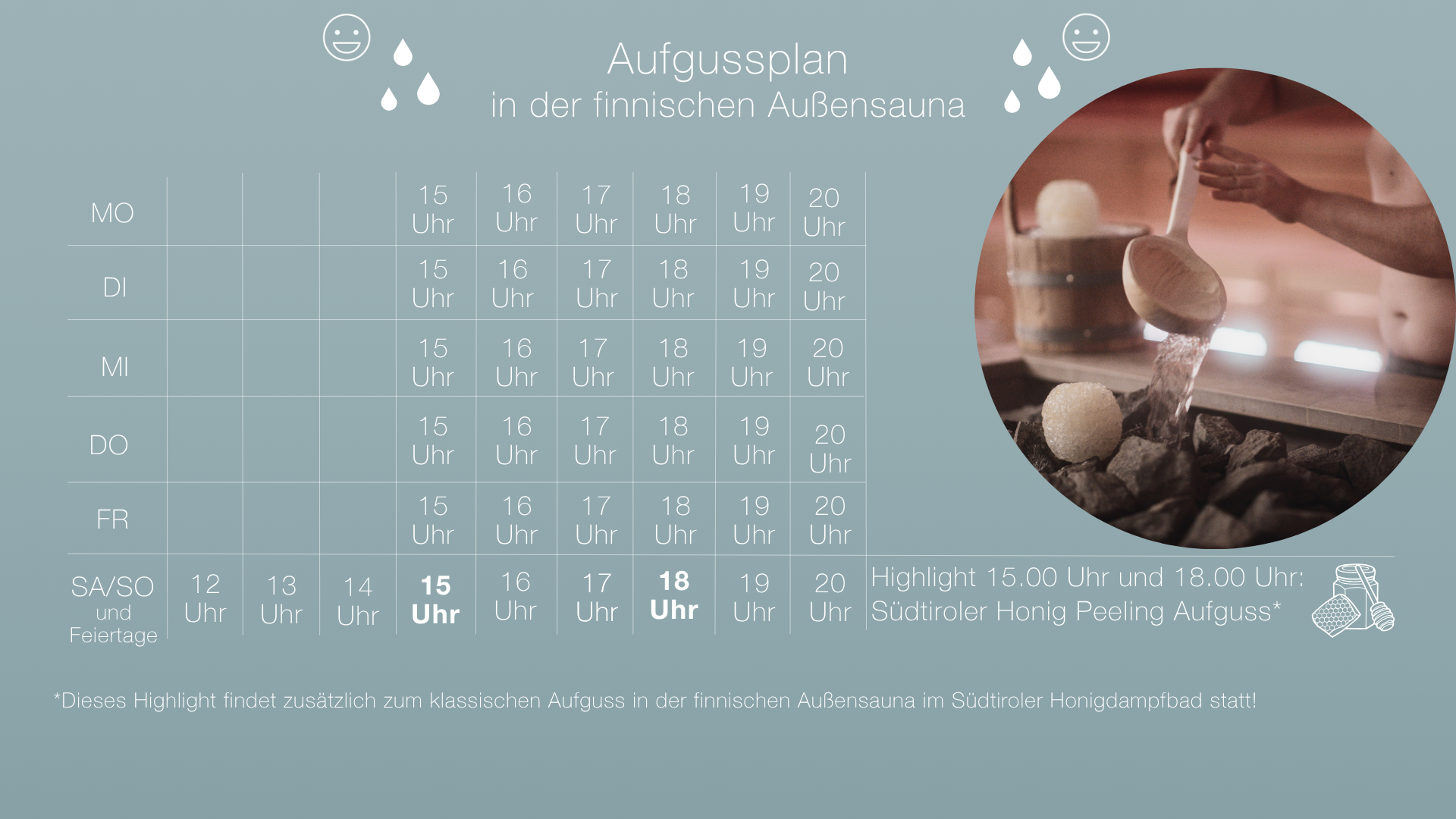 Wenn du jetzt das Gefühl hast, dass du dahin musst, kannst du hier schon mal den aktuellen Aufgussplan checken.