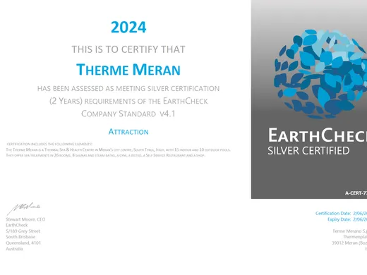 Terme Merano has officially been recognised by EarthCheck, the leading global certification and benchmarking organisation for sustainable tourism.