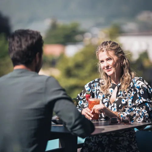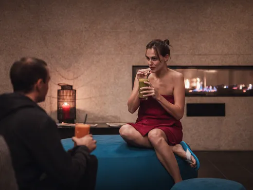 Nell’area piscine e sauna, puoi mangiare e bere comodamente – anche in accappatoio.